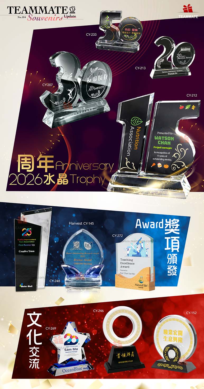 大部分水晶獎座我們都可以一件起訂,非常適合頒發給個別優秀員工或榮休紀念。不過,部分小型水晶禮品(如鎖匙扣、電話座)若數量太少,單價會相對較高,建議批量訂購以享更優惠價格。