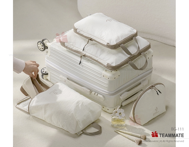 套裝旅行收納袋是旅行好拍檔,能夠有效地提升旅行的便捷性與組織性。將衣物進行分類存放,比如內衣、外衣和睡衣,避免混亂,保持整齊。鞋袋可以防止鞋底污垢污染其他物品。電子產品、配件和充電線可以放在專屬的收納袋中,避免纏繞和遺失。洗漱用品也能集中在特定收納袋中,便於快速取用而不必擔心滲漏問題。使用旅行收納袋後,整個行李箱的物品變得一目了然,有序整理,輕鬆找到所需物品,大大提升了旅行的效率與舒適度。所以套裝旅行收納袋都是最受歡迎的宣傳禮品之一,客人每次使用都是展示品牌商標的一個機會。