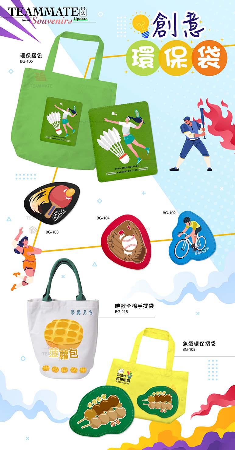 今期推介環保摺袋系列有以運動比賽項目、香港特式食品、節日等為主題,大大小小,林林總總都是創新設計,與別不同。