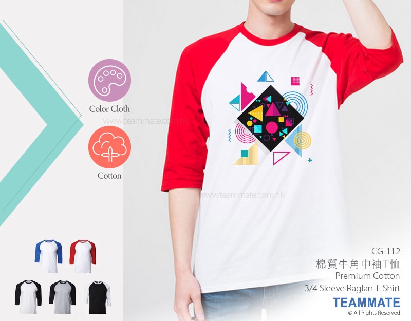 棉質牛角中袖T恤 Premium Cotton 3/4 Sleeve Raglan T-Shirt
