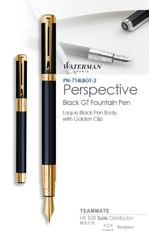 威迪文遠景純黑金夾墨水筆  Waterman - Perspective Black GT Fountain Pen